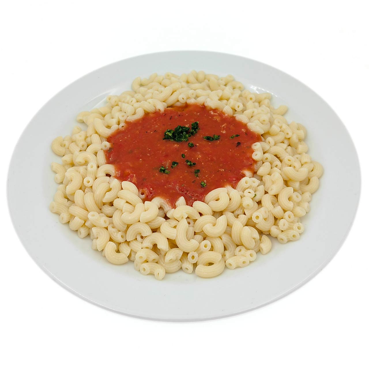 Testenine v obliki polžkov s paradižnikovo omako in začimbami.