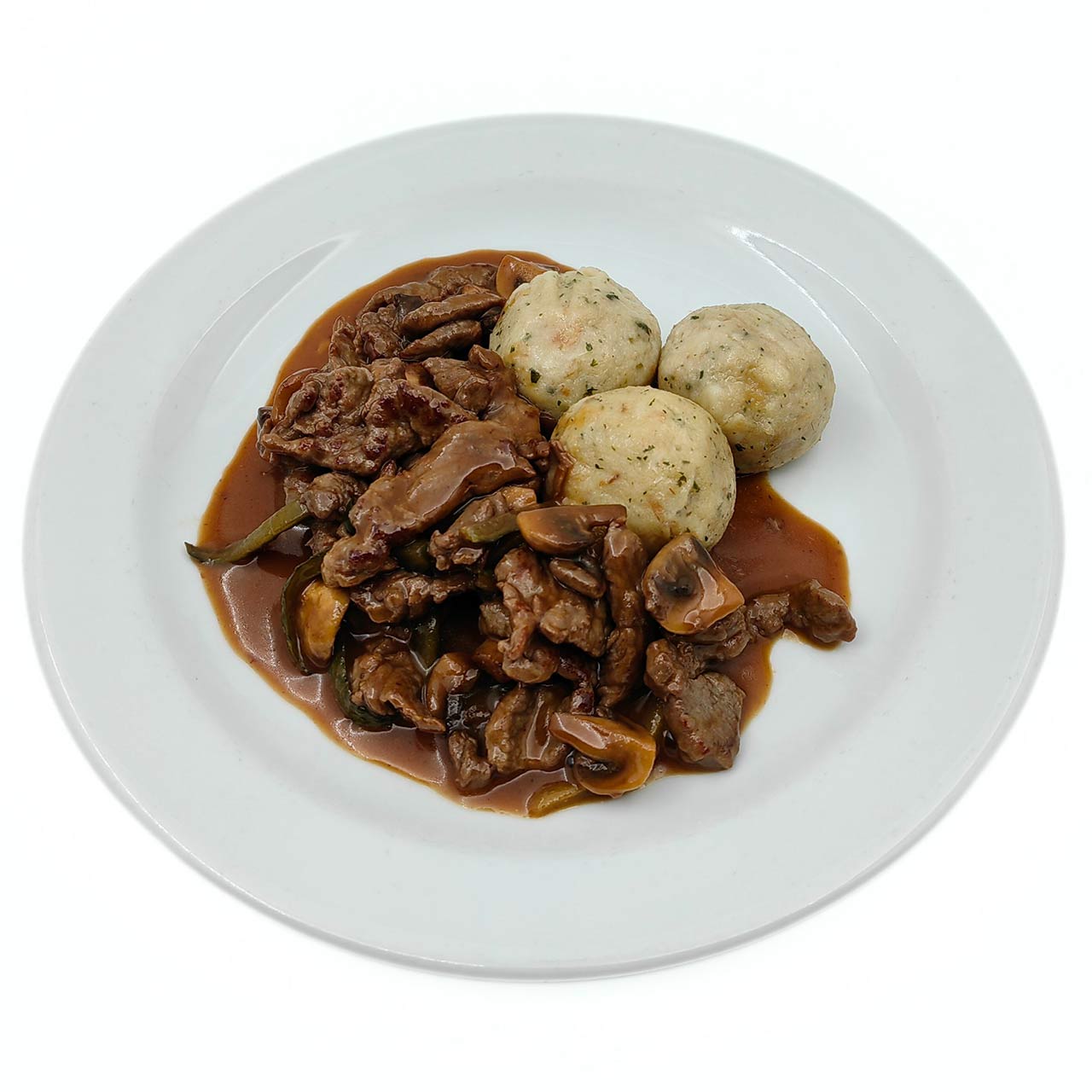 Dough made from white bread, milk, eggs, onions, and spices, shaped into dumplings and boiled in water.