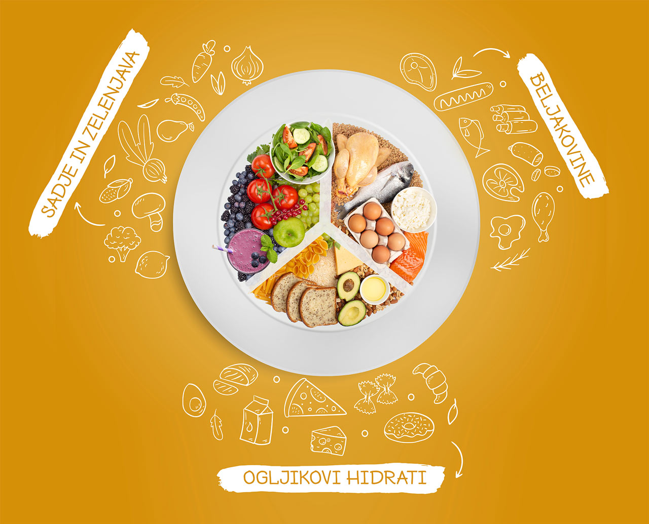 Bodi tudi ti ostrih misli in si sestavi bolj uravnotežen obrok – pomagaš si lahko z metodo krožnika za mlade športnike (prikazano spodaj), s pomočjo katere si lahko sestaviš uravnotežen in okusen obrok, ter poskrbiš za manj zavržene hrane.